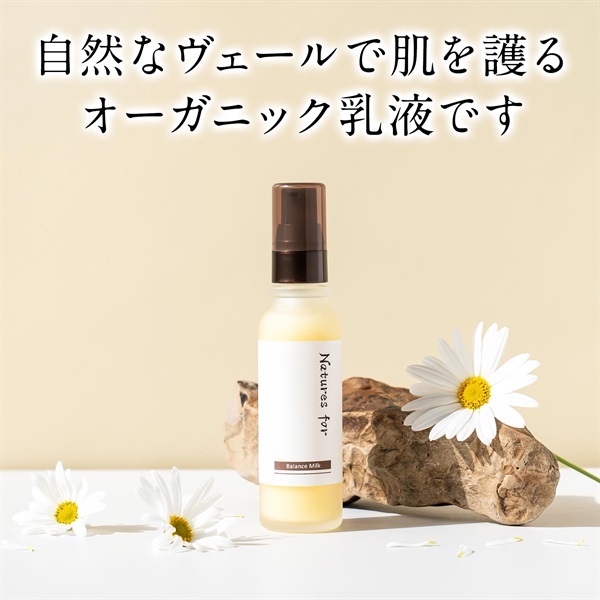 バランスミルクは合成の乳化剤を使用しない、自然由来100%のオーガニック乳液。伝統と先端を兼ね備えた成分で自然な潤いと被膜感がないヴェールであなたの肌をしっかり守ります。