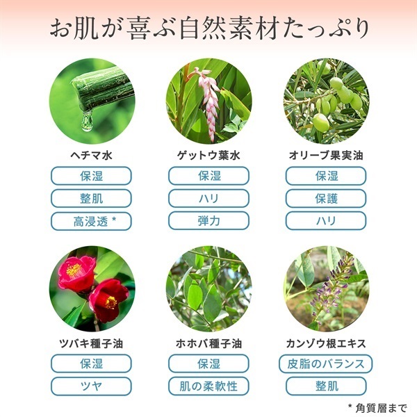 有機JAS認定の自社農場産の有機ヘチマを使用。ヘチマは、朝鮮人参にも含まれるポリフェノールの一種サポニンをはじめ、アミノ酸やミネラルを豊富に含んだ伝統的な美肌素材。肌にハリを与えすこやかに保ちます。
