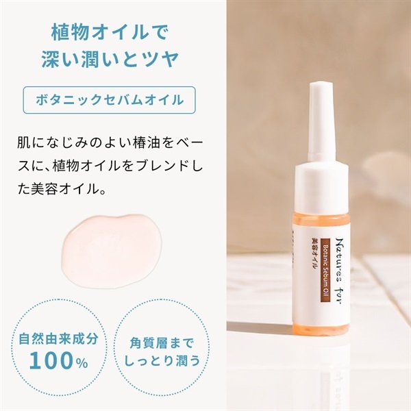 自分の「皮脂」のようにブレンドした植物オイルが肌を整え、ハリとツヤのある肌に導きます。