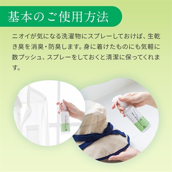 ニオイが気になる洗濯物にスプレーしておけば、生乾き臭を消臭・防臭します。