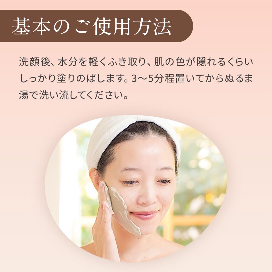 2. 3~5分程置いてからぬるま湯で洗い流してください。パック後の洗顔は不要です。