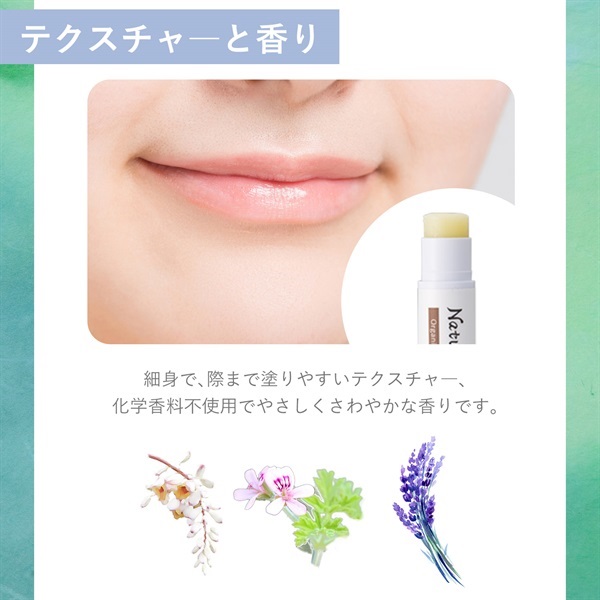 自然由来100%、美容成分たっぷりの贅沢リップ♪早めの対策で、乾燥知らずのみずみずしい唇を目指しましょう。