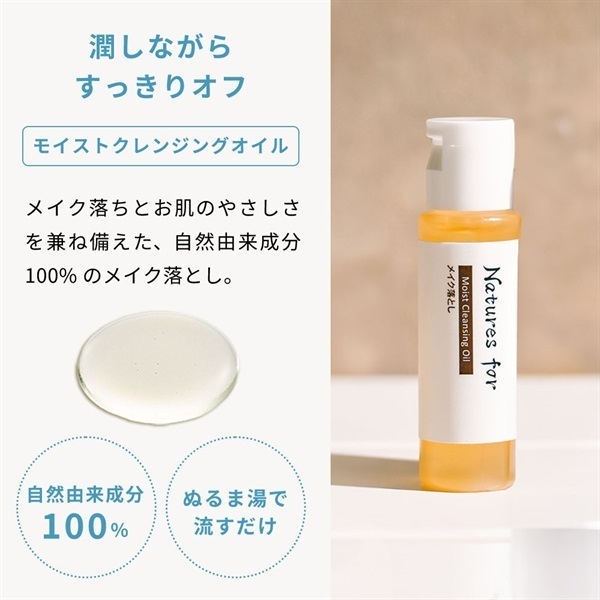 Natures for シリーズはヘチマなどの伝統素材の自然の浸透力を活かしたり、長年の経験と研究を活かしてオイルを独自ブレンドしたりすることで敏感な肌もやさしくケアして心地よくなじみます。