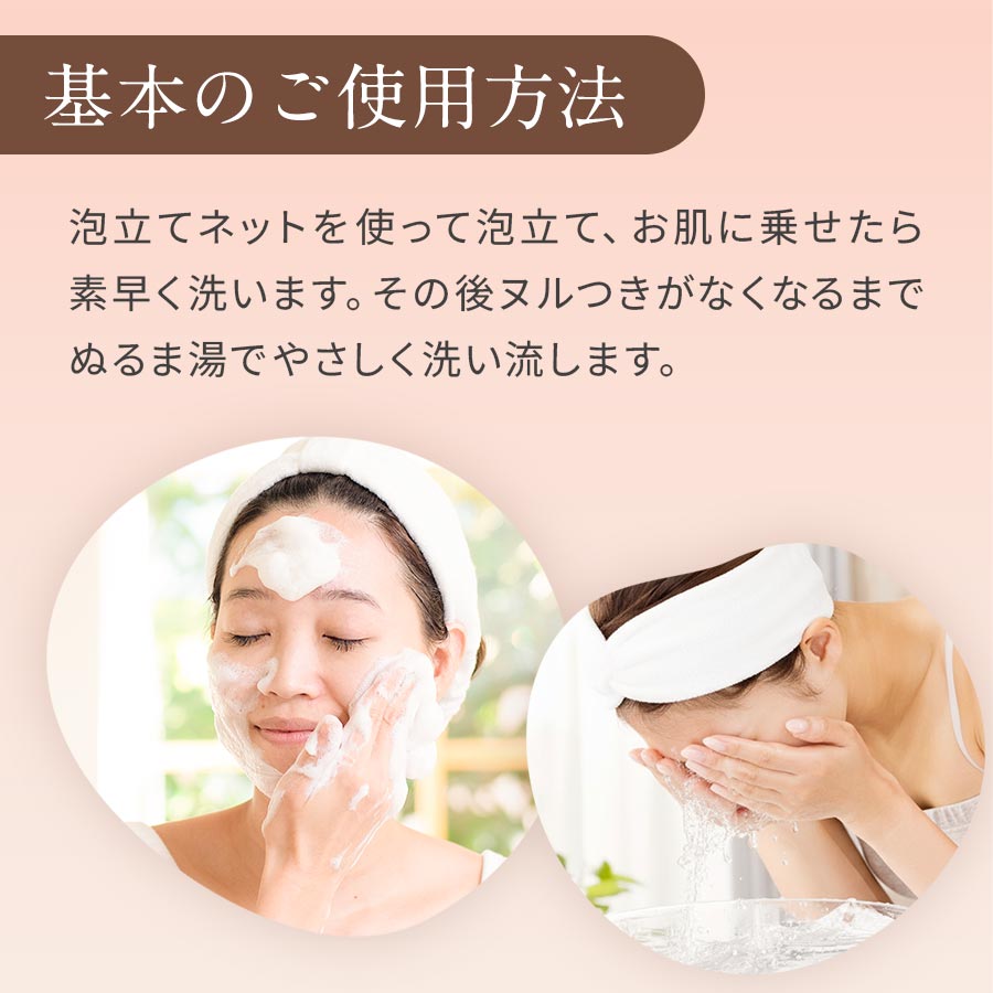 朝は、基本的に洗顔石けんは不要ですのでぬるま湯で軽く洗い流してください。どうしてもべたつきなどを感じる場合にのみ、石けんで洗顔してください。